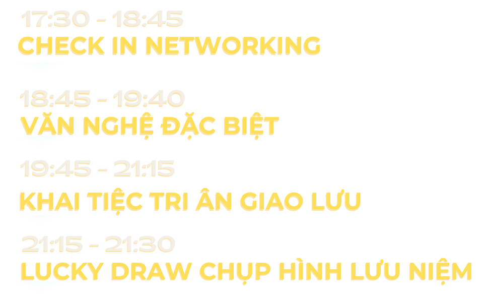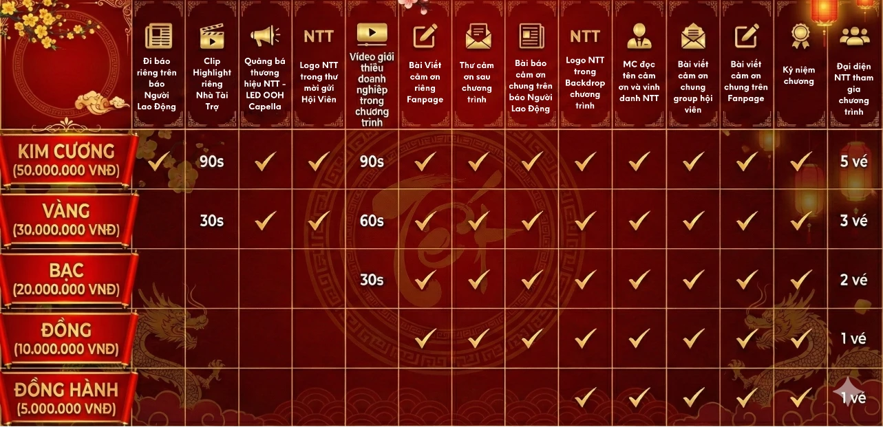 Lời cảm ơn đặc biệt xin được gửi đến Nhà Tài Trợ Kim Cương – điểm sáng không thể thiếu của chương trình. Sự hiện diện của quý doanh nghiệp tại khu booth trưng bày đã trở thành tâm điểm thu hút, mang đến hình ảnh chuyên nghiệp và đẳng cấp đúng chất “kim cương”. Không chỉ đồng hành, quý nhà tài trợ còn góp phần nâng tầm trải nghiệm sự kiện, giúp mọi khoảnh khắc trở nên trọn vẹn và rực rỡ hơn.