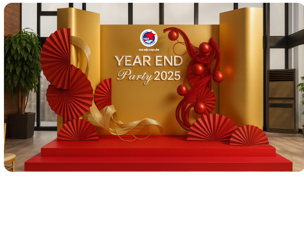 Year End Party Chợ Lớn 2025 Vững Kết Đồng Tâm là dịp ý nghĩa để chúng ta nhìn lại chặng đường đã qua, nơi mỗi bước tiến đều được tạo nên từ niềm tin, sự sẻ chia và đồng hành giữa các thành viên. Đây không chỉ là buổi tiệc tổng kết, mà còn là lời tri ân và vinh danh gửi đến những cá nhân, tập thể đã góp phần xây dựng, phát triển và lan tỏa giá trị của YBA Chợ Lớn trong suốt năm qua.